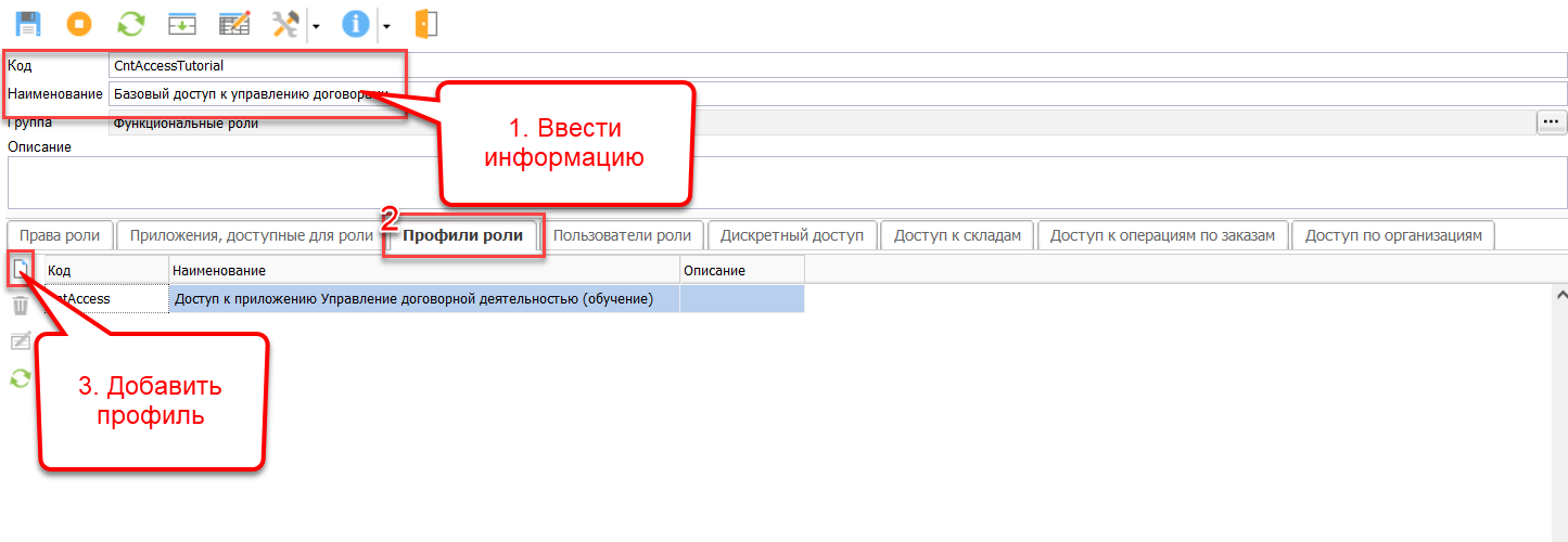 Создайте профиль и роль, дающие доступ к приложению «Управление договорной деятельностью». Выдайте профиль своему пользователю.Для выполнения задания необходимо: