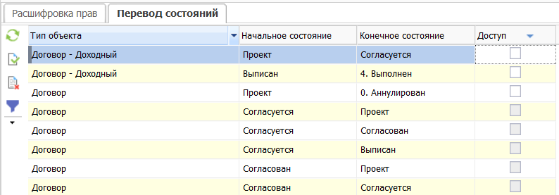 Обозначает, что роли выданы права хотя бы на один перевод состояний |