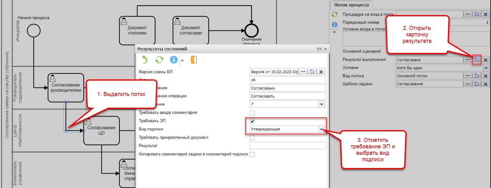 Задание 3. Настройка требования ЭП на схеме процесса#