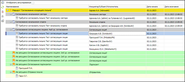 1. Задачи всегда направляются параллельно, но есть возможность настроить состояния маршрута таким образом, чтобы исполнители получали задачи последовательно. Для примера разберем маршрут «Согласование распоряжения».