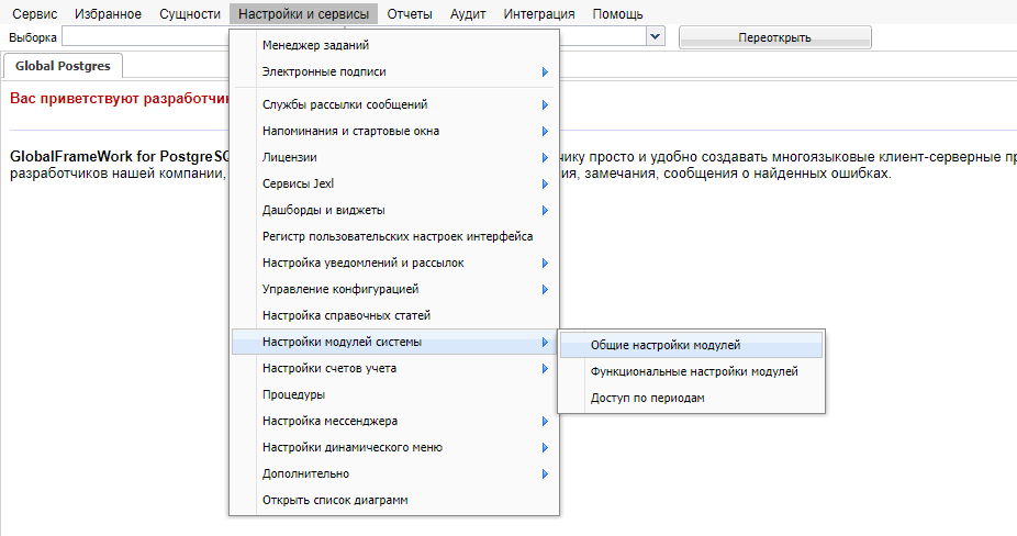 Рисунок 1. Расположение общих настроек модулей.