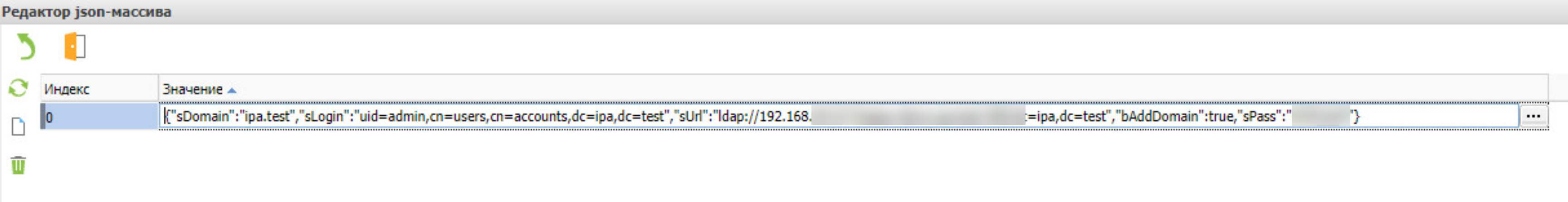 [{"sDomain":"local.local","sLogin":"admin@local.local","sUrl":"ldap://<IP_ADDRESS>:<PORT>","sPass":"EncryptedStorage:<PASS>"}]