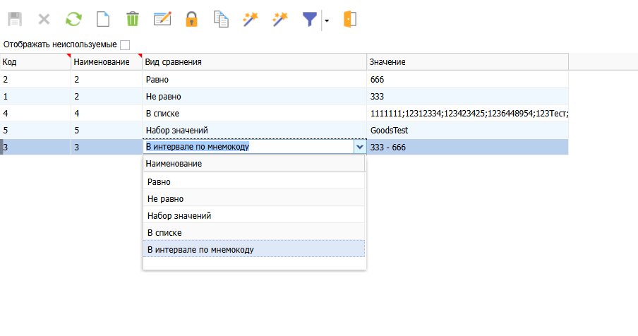 avm.xmlдобавьте настройку атрибутов.<attributes> <attr name="sCompareKindName" isVisible="false"/> <attr name="sCompareKindCaption" isVisible="true" order="100" caption="Вид сравнения"> <editor> <lookup changeableAttr="sCompareKindName" isLookupLazyLoad="true" lookupKeyAttr="sName" lookupListAttr="sCaption" lookupQuery="gtk-Btk_FltAttributeCompareKindAvi#Lookup_ByParams" isResetButtonVisible="true"> <params> <param name="names" value="Equal;InEqual;InValueSet;InList;InterValMnemoCode" dataType="String"/> </params> </lookup> </editor> </attr> <attr name="sFilterValue" isVisible="true" order="110" caption="Значение"> <editor editorTypeAttr="sFilterValueEditor"/> </attr> <attr name="sFilterValueEditor" isVisible="false"/> <attr name="bFilterValueRo" isVisible="false"/> </attributes>